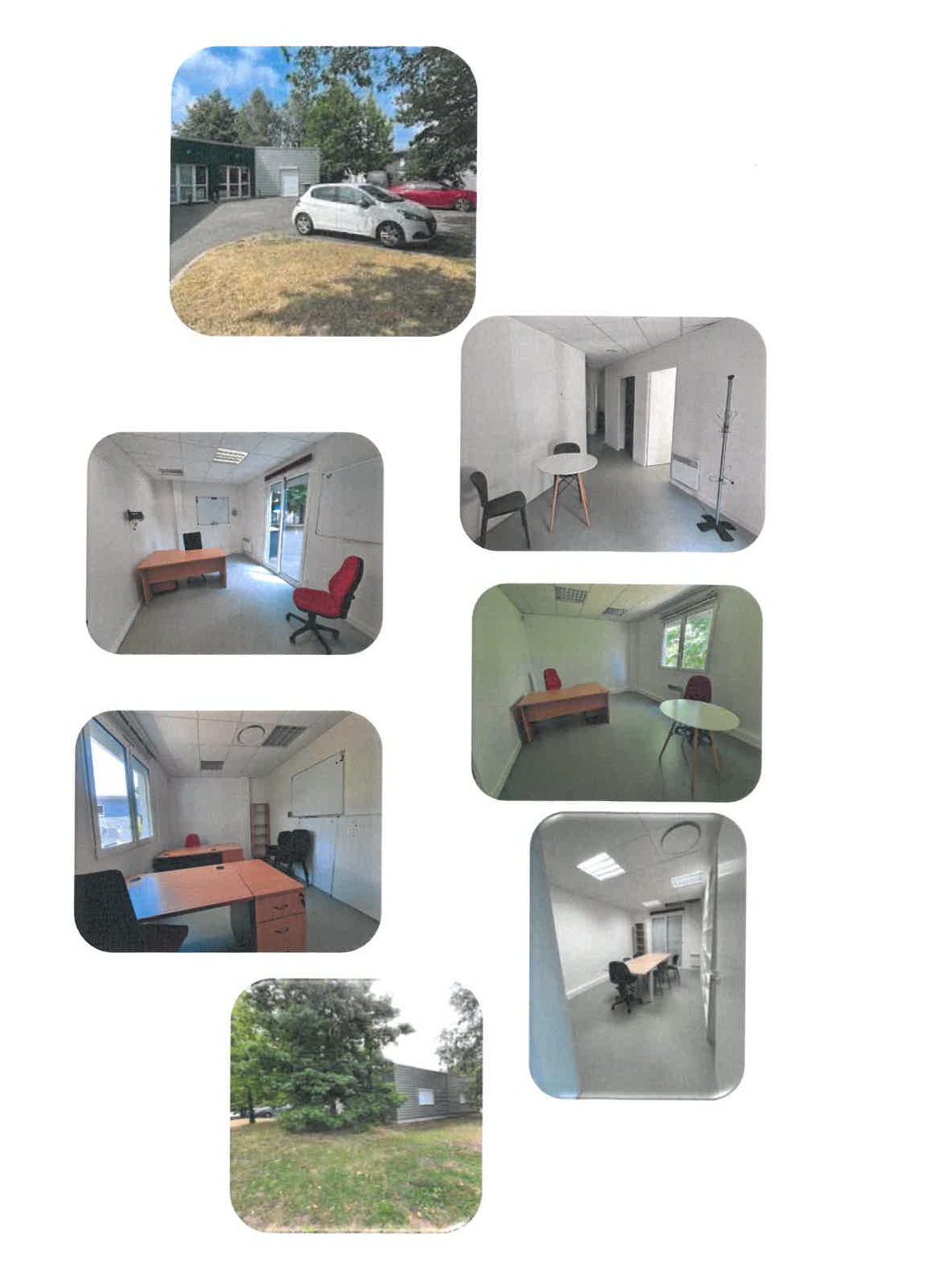 100 m2 de bureaux climatisés à louer : 1 espace accueil / 3 bureaux / 1 salle de réunion / 1 cuisine / WC.